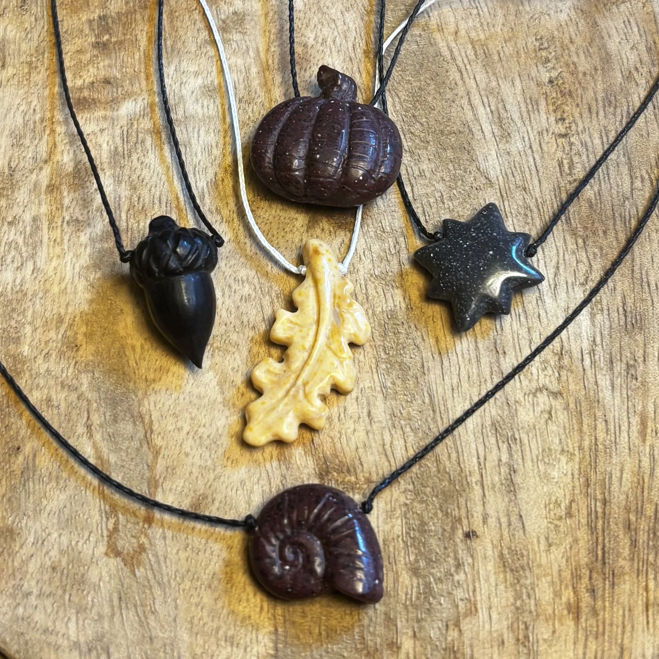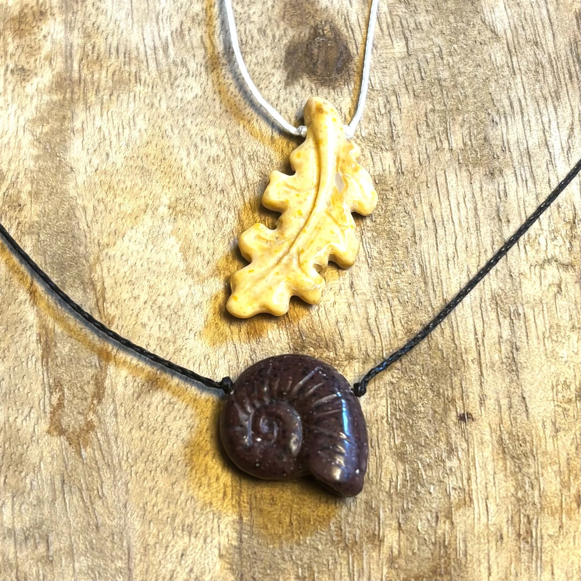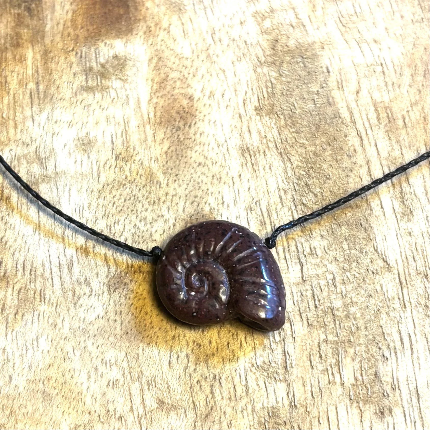 • Pompeii Red Corian Nautilus, handcarved by Christopher Miller, on braided nylon with secure screw type barrel clasp.