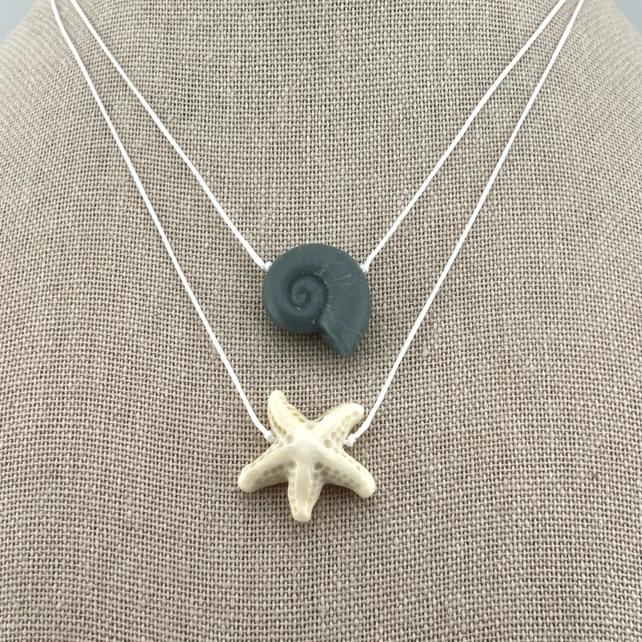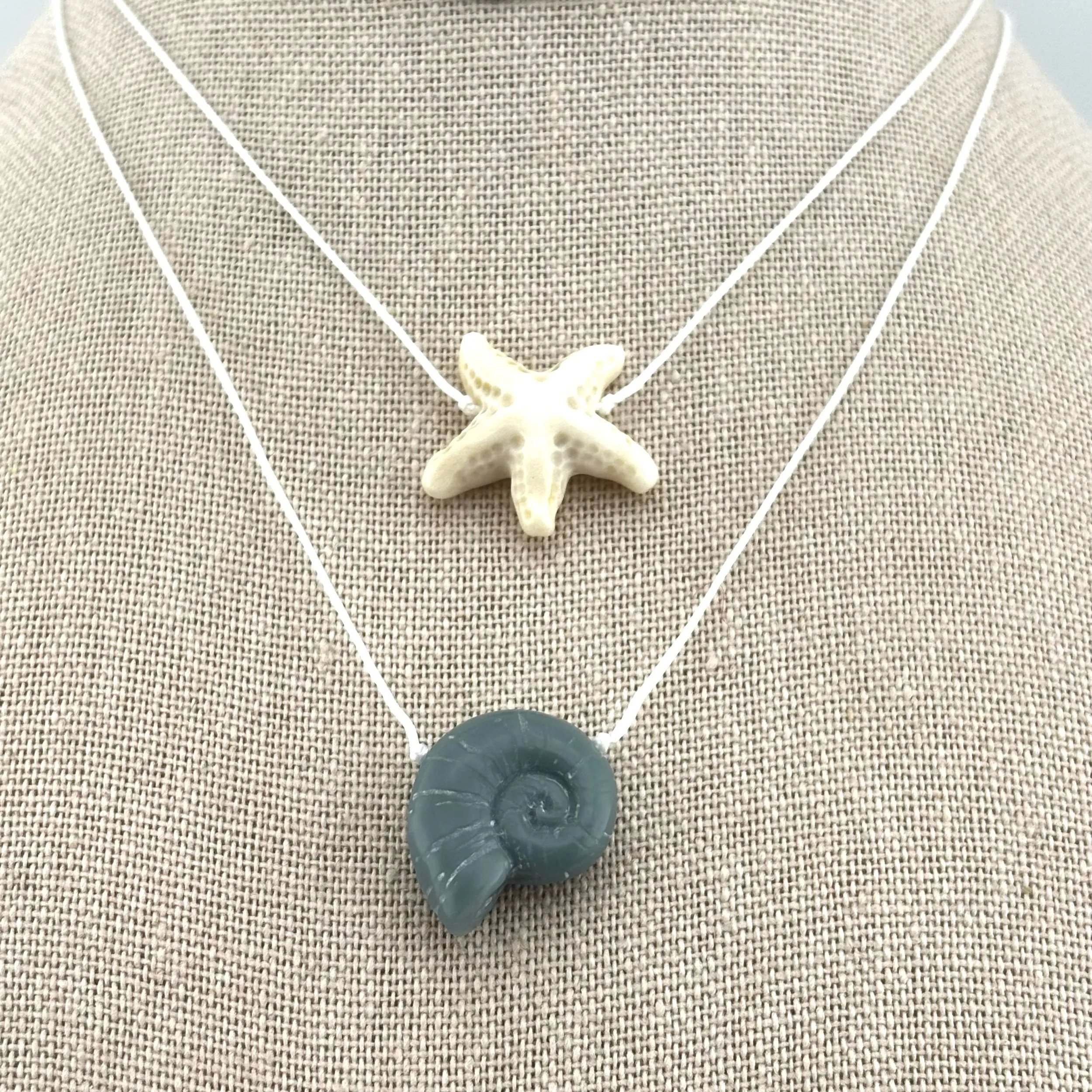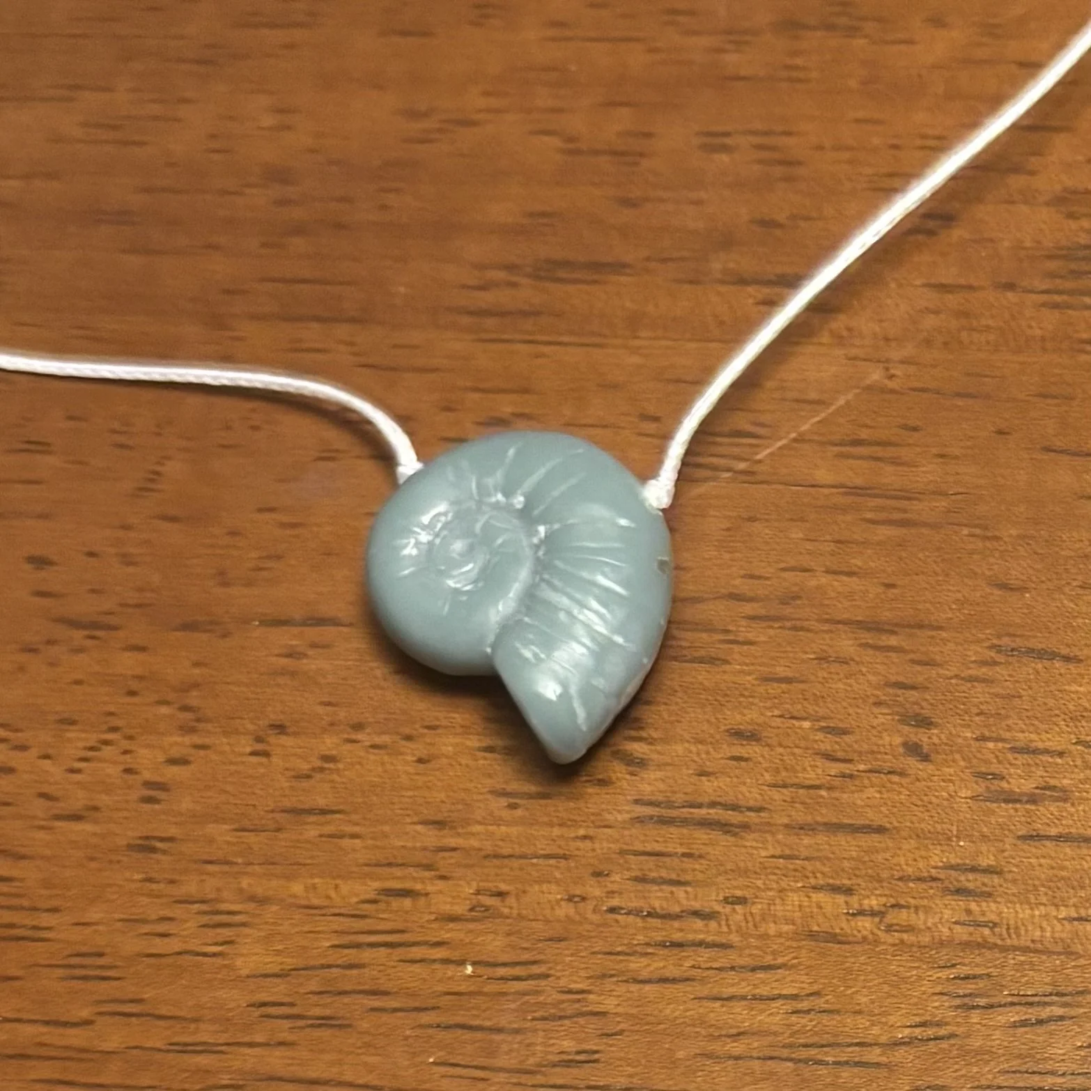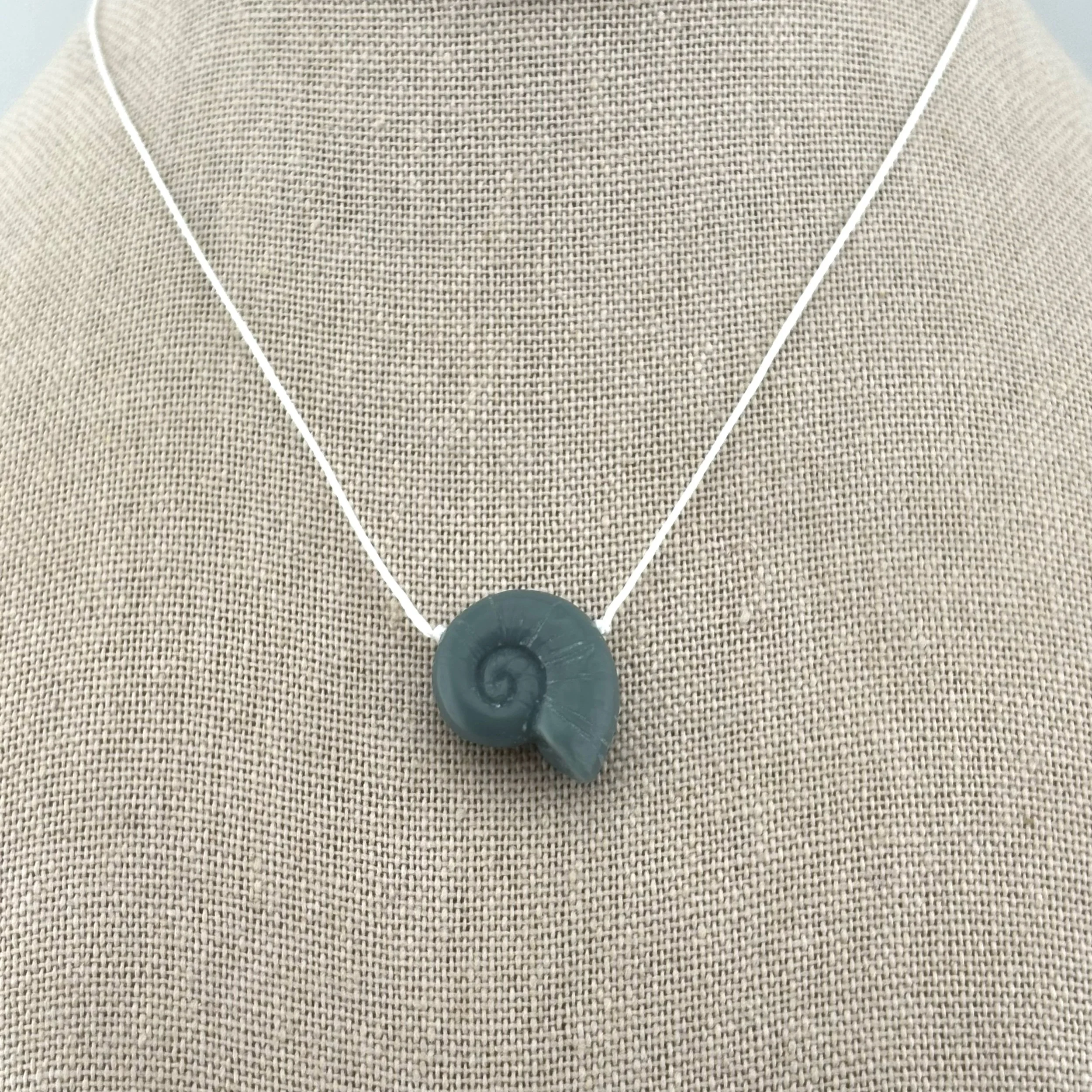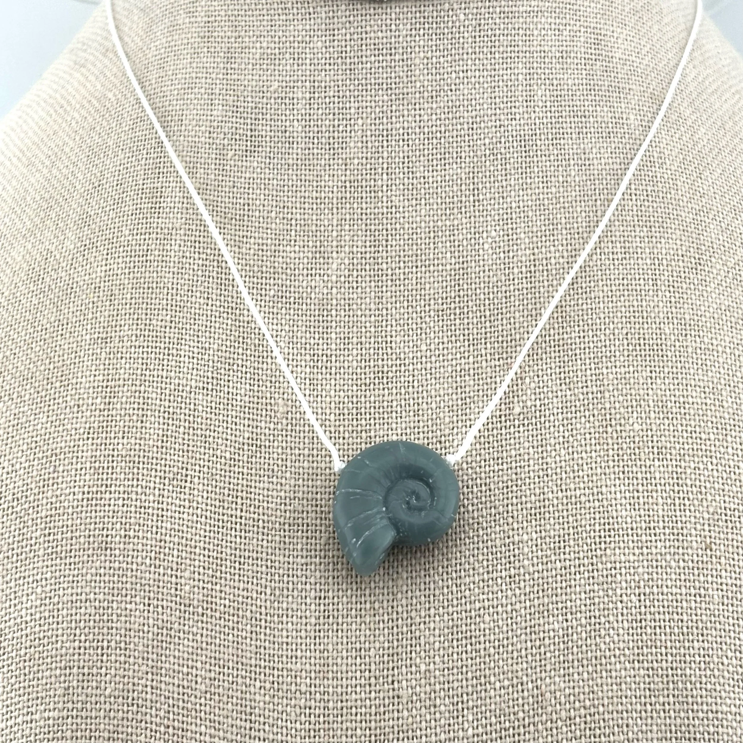 • Nautilus: Verdant Green Corian Nautilus, handcarved by Christopher Miller, on braided nylon with secure screw type barrel clasp.