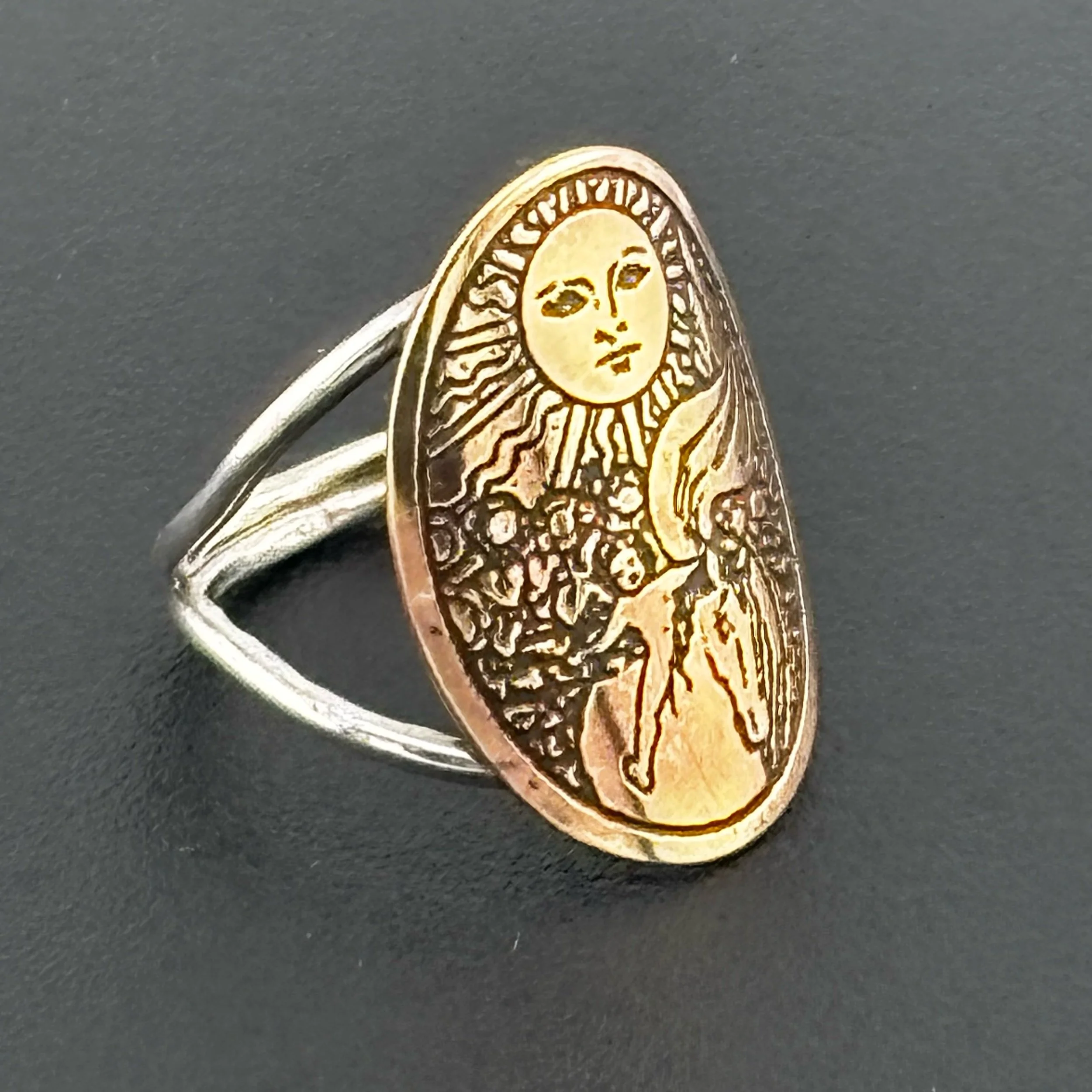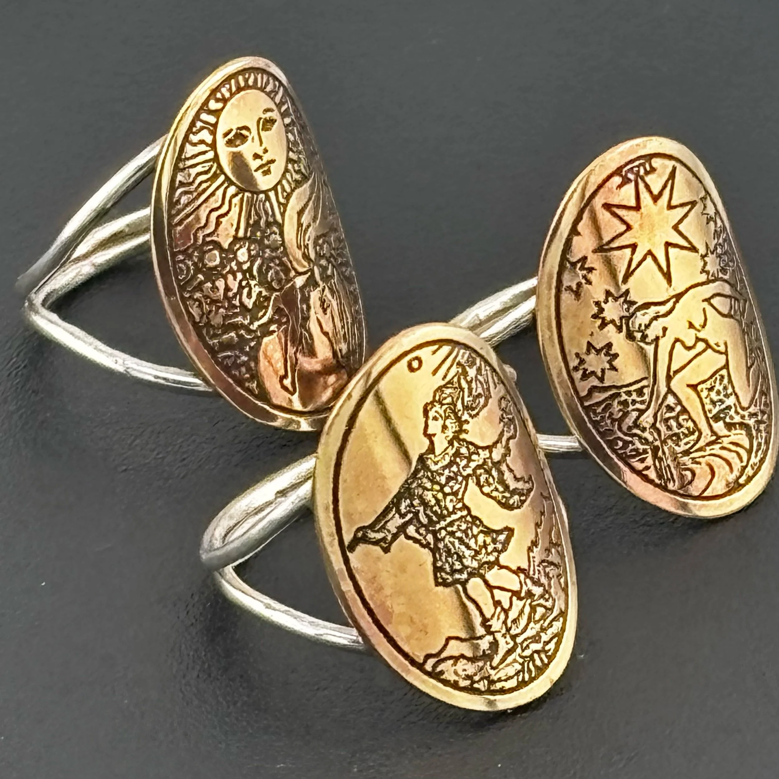 Large Round Tarot Card single earrings etched by Gino Schiavone