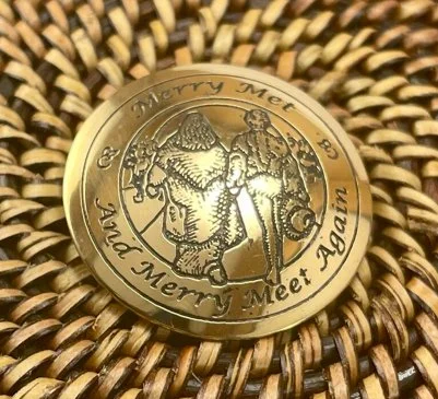 This whimsical “Sun” pin is a foolish collaboration between Gino and Heidi Combining the “compass” marks, Motley bells and Heidi’s facial features. Goddess of Pale Moon